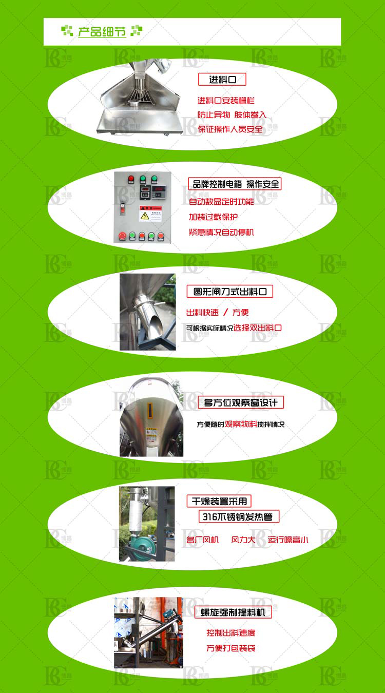 臥式攪拌機工作原理:臥式筒體內裝有雙軸旋轉反向的漿葉,漿葉成一定角度將物料沿軸向、徑向循環翻攪,使物料迅速混合均勻臥式混合機性能特點減速機帶動軸的旋轉速度與槳葉的結構會使物料重力減弱,隨著重力的缺乏,各物料存在顆粒大小、比重懸殊的差異在混合過程中被忽略。